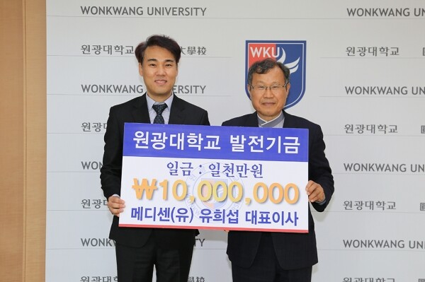 2015년 회사를 경영하면서 늦깎이 학생으로 학교에 다니던 시절에도 1,000만 원의 발전기금을 기탁해 박수를 받은 유희섭 대표는 “원광대에 입학하고 나서 사업 등 주변 일들이 모두 잘 풀려 학교의 좋은 기운을 받은 것 같아 항상 감사한 마음으로 생활했다”며 “모교 및 학과 발전에 조금이나마 도움을 주기 위해 다시 한 번 발전기금을 기탁하게 됐다”고 밝혔다.