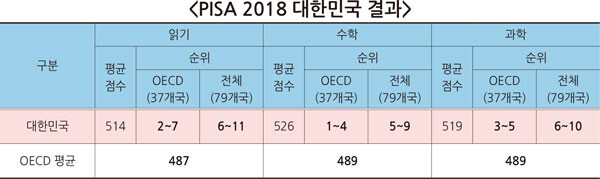 경제협력개발기구(OECD)는 3일 ‘국제 학업성취도 평가(Programme for International Student Assessment, 이하 PISA) 2018’ 결과를 공식 발표했다.