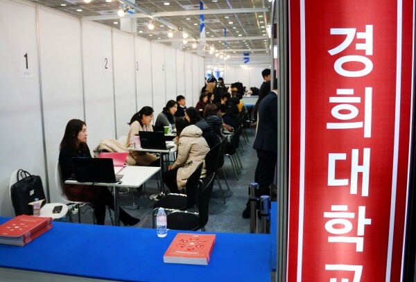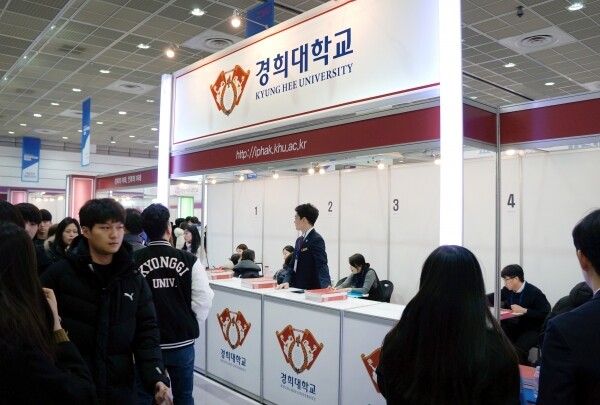 [대학저널 백두산 기자] 한국대학교육협의회가 주최하는 '2020학년도 정시 대학입학정보박람회'(이하 정시박람회)가 5일부터 7일까지 서울 삼성동 코엑스 1층 A홀에서 열린다. 이번 정시박람회에는 전국 135개 대학이 참가한다. 현재 수험생과 학부모들이 발 디딜 틈 없이 몰리는 등 현장 열기가 뜨겁다. 사진은 경희대학교 상담부스 모습.