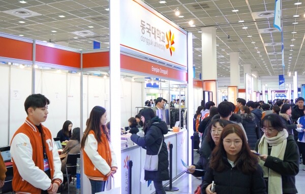 [대학저널 백두산 기자] 한국대학교육협의회가 주최하는 '2020학년도 정시 대학입학정보박람회'(이하 정시박람회)가 5일부터 7일까지 서울 삼성동 코엑스 1층 A홀에서 열린다. 이번 정시박람회에는 전국 135개 대학이 참가한다. 현재 수험생과 학부모들이 발 디딜 틈 없이 몰리는 등 현장 열기가 뜨겁다. 사진은 동국대학교 상담부스 모습.