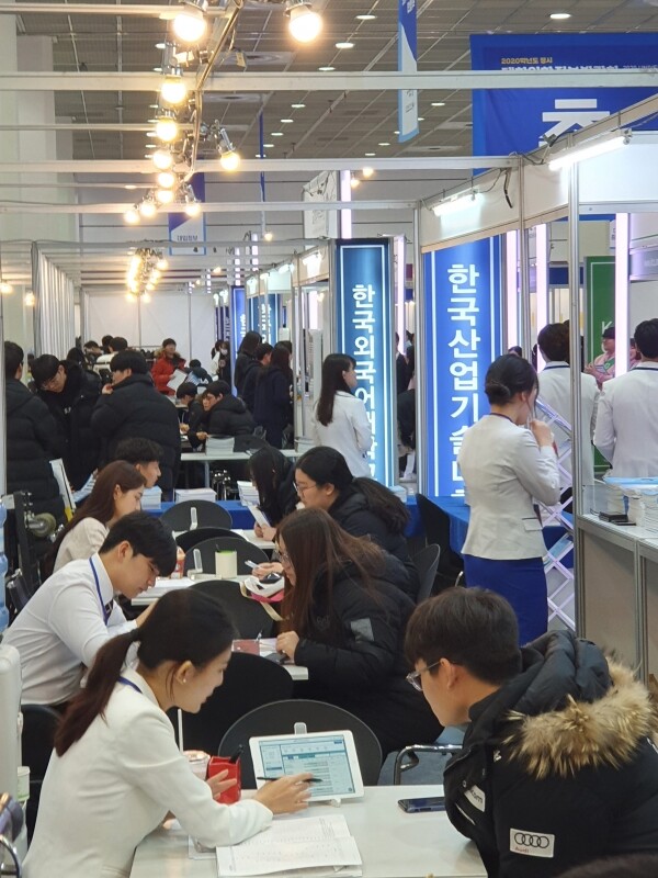 [대학저널 백두산 기자] 한국대학교육협의회가 주최하는 '2020학년도 정시 대학입학정보박람회'(이하 정시박람회)가 5일부터 7일까지 서울 삼성동 코엑스 1층 A홀에서 열린다. 이번 정시박람회에는 전국 135개 대학이 참가한다. 현재 수험생과 학부모들이 발 디딜 틈 없이 몰리는 등 현장 열기가 뜨겁다. 사진은 한국산업기술대학교 상담부스 모습.