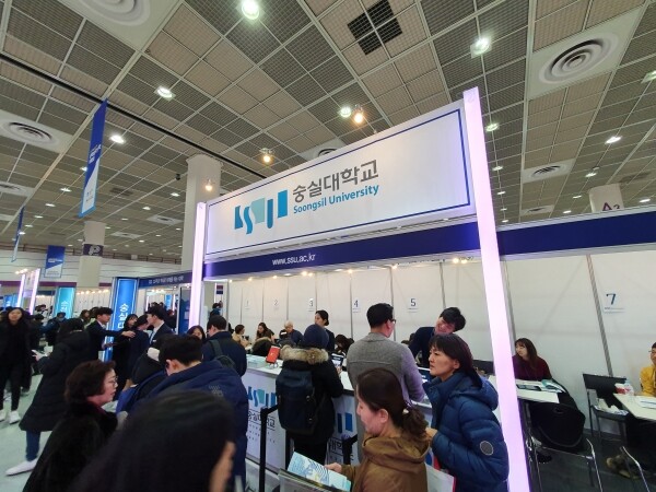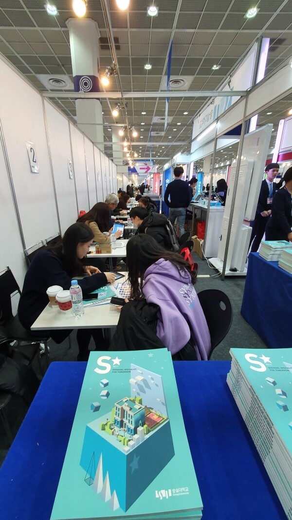 [대학저널 백두산 기자] 한국대학교육협의회가 주최하는 '2020학년도 정시 대학입학정보박람회'(이하 정시박람회)가 5일부터 7일까지 서울 삼성동 코엑스 1층 A홀에서 열린다. 이번 정시박람회에는 전국 135개 대학이 참가한다. 현재 수험생과 학부모들이 발 디딜 틈 없이 몰리는 등 현장 열기가 뜨겁다. 사진은 숭실대학교 상담부스 모습.