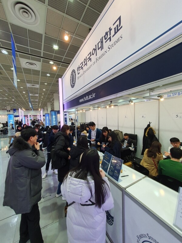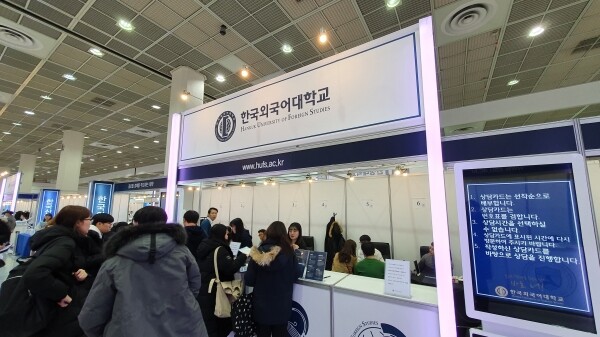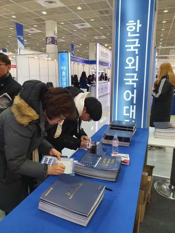 [대학저널 백두산 기자] 한국대학교육협의회가 주최하는 '2020학년도 정시 대학입학정보박람회'(이하 정시박람회)가 5일부터 7일까지 서울 삼성동 코엑스 1층 A홀에서 열린다. 이번 정시박람회에는 전국 135개 대학이 참가한다. 현재 수험생과 학부모들이 발 디딜 틈 없이 몰리는 등 현장 열기가 뜨겁다. 사진은 한국외국어대학교 상담부스 모습.