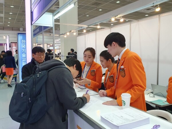 [대학저널 백두산 기자] 한국대학교육협의회가 주최하는 '2020학년도 정시 대학입학정보박람회'(이하 정시박람회)가 5일부터 7일까지 서울 삼성동 코엑스 1층 A홀에서 열린다. 이번 정시박람회에는 전국 135개 대학이 참가한다. 현재 수험생과 학부모들이 발 디딜 틈 없이 몰리는 등 현장 열기가 뜨겁다. 사진은 한국기술교육대학교(코리아텍) 상담부스 모습.