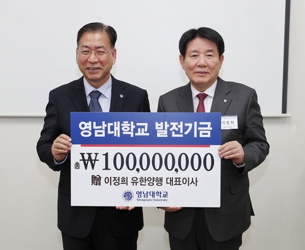이정희 유한양행 대표이사, 모교 영남대에 1억 원 기탁