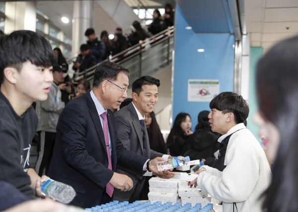 서길수 총장은 “추운 날씨에도 새벽같이 등교해 공부하는 학생들을 보면 대견하고 자랑스럽다. 교수님들과 학우들이 항상 곁에서 응원하고 있다는 것을 잊지 말고 조금만 더 힘 내주길 바란다”면서 “이번 기말시험을 잘 치르고 2019년을 잘 마무리하길 바란다”고 말했다.