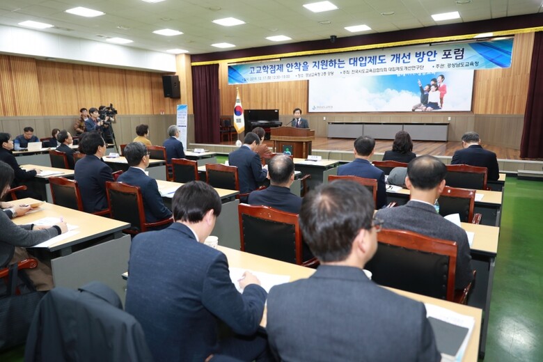협의회 산하 대입제도개선연구단(단장 박종훈 경남교육감)은 17일 경남교육청에서 열린 ‘대입제도개선 연구단 포럼’에서 ‘고교학점제 시행에 따른 중장기 대입 개편 연구 결과’를 발표했다.