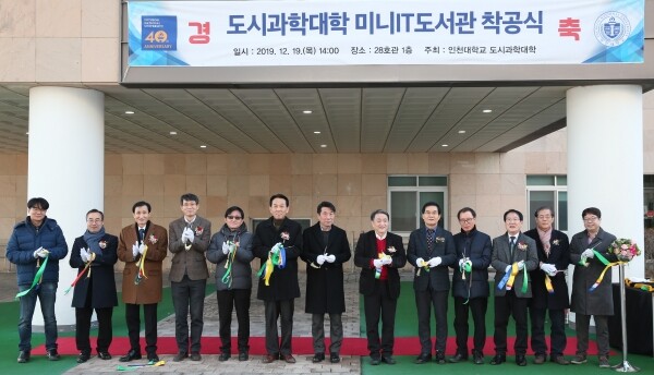 [대학저널 임지연 기자] 인천대학교(총장 조동성) 도시과학대학(학장 박주문)은 지난 19일 인천대 28호관 도시과학대학 1층 필로티 공간에서 미니 IT도서관 착공식을 개최했다.