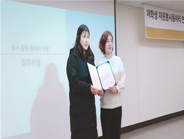 [대학저널 이승환 기자] 경복대학교 간호대학 동아리 '매치'가 경기도광역치매센터가 주관한 대학생 자원봉사 동아리 연합 아름드리 활동 평가 행사에서 최우수 단체상을 수상했다.