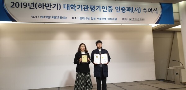 2019년 하반기 대학기관인증평가는 총 68개 대학의 신청을 받아 54개 대학이 ‘인증’, 11개 대학이 ‘조건부인증’, 2개 대학이 ‘인증유예’, 1개 대학이 ‘불인증’으로 최종 판정됐다. 시상식은 27일 밀레니엄 서울 힐튼 호텔에서 열렸다.