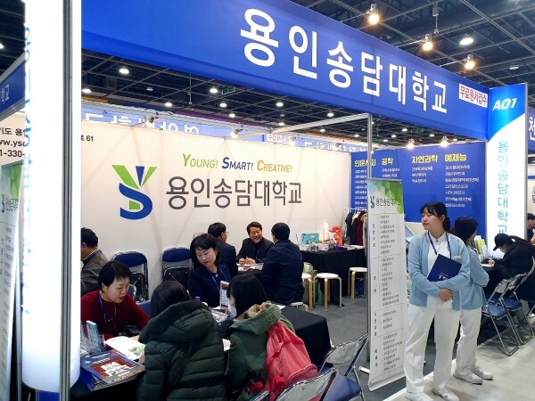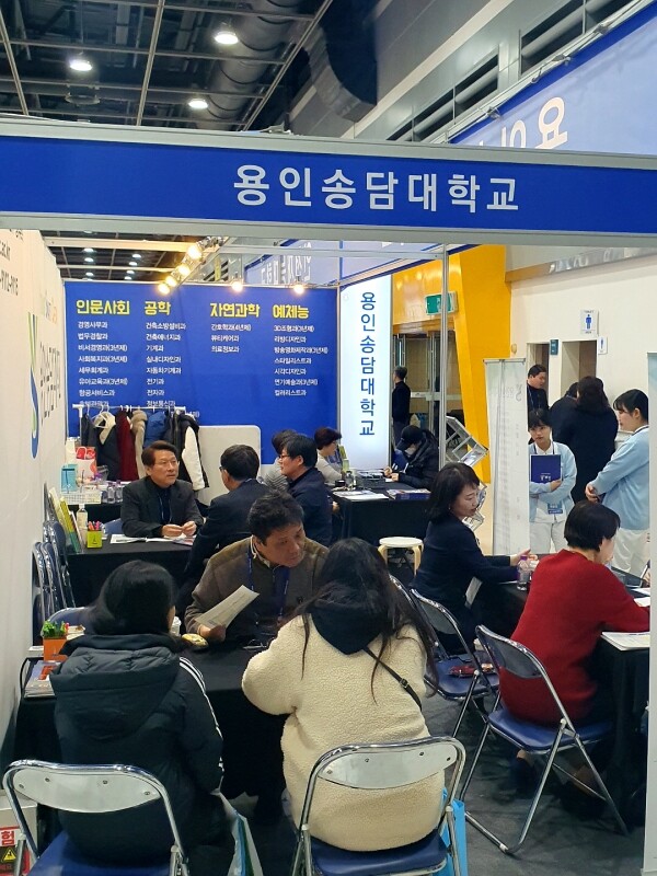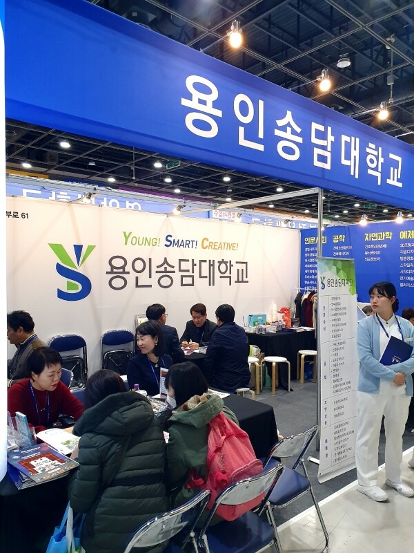 [대학저널 이승환 기자] 한국전문대학교육협의회가 주최하는 '2020학년도 정시 전문대학 입학정보 박람회'(이하 전문대 정시박람회)가 2일부터 4일까지 서울 서초구 양재 aT센터 제2전시관에서 열린다. 이번 전문대 정시박람회에는 전국 80개 전문대학이 참가한다. 현재 수험생과 학부모들이 대학부스에서 입시 상담을 진행하고 있다. 사진은 용인송담대 상담부스 모습.