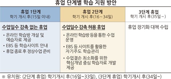 3단계 휴업은 8주 이상 휴업하는 것으로 교육 당국과 각 학교는 ‘휴업 장기화 대책’을 새로 설계하게 된다.