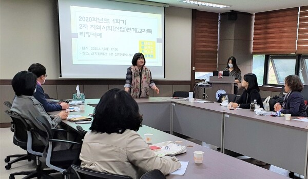이날 행사에 참석한 지역사회(산업)연계교과목 담당교수들은 코로나19로 인한 ‘교과목 운영 방안’과 ‘학생들의 애로사항’, 향후 개최될 ‘청바지(청년들이 바꿔가는 지역사회) 프로젝트 계획’ 등에 대한 점검 및 논의를 진행했다.