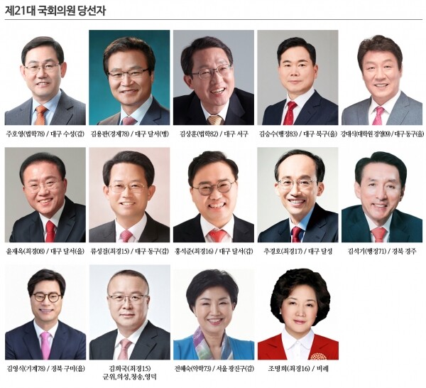 [대학저널 이효정 기자] 지난 15일 치러진 제21대 국회의원 선거에서 다시 한번 영남대학교(총장 서길수)의 동문파워가 확인됐다. 이번 선거에서 영남대는 지역구와 비례대표 등 총 14명의 국회의원을 배출했다.