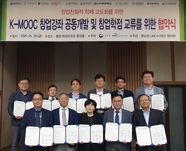 [대학저널 신효송 기자] 한국해양대학교(총장 도덕희) LINC+사업단(단장 경갑수)이 5월 29일 경남 통영 동원리조트에서 동남권 LINC+사업단 10개 대학과 함께 ‘K-MOOC(한국형 온라인 학습과정) 창업강좌 공동개발 및 창업학점교류를 위한 협약’을 체결했다. 협약대학은 경남대, 경상대, 동명대, 동서대, 동아대, 동의대, 부경대, 울산대, 인제대, 창원대이다.
