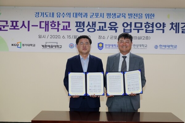 [대학저널 이승환 기자] 계원예술대학교(총장 송수근)는 15일 군포시청 2층 소회의실에서 군포시(시장 한대희)와 업무협약을 체결하고 지역사회 맞춤형 콘텐츠 개발을 통해 군포지역 평생교육의 발전에 적극 나서기로 했다.