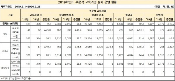 산학협력 현황으로는 채용 약정·우대를 조건으로 산업체 수요를 접목해 운영하는 교육과정인 주문식 교육과정수는 증가세를 나타냈다.