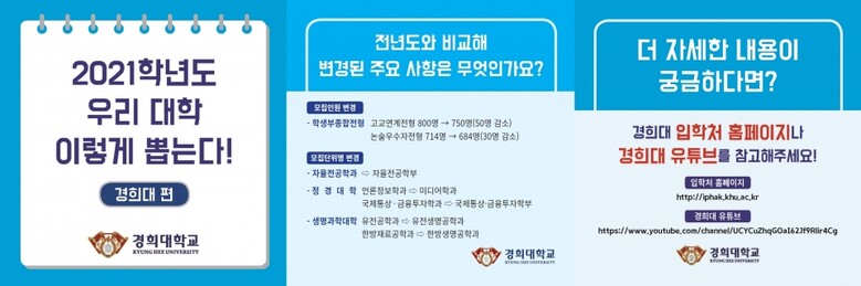 카드로 읽는 각 대학별 수시입학정보는 e-대학저널 뿐 아니라 대학저널 네이버포스트와 블로그, 인스타그램 등에 순차적으로 업로드될 예정이다.
