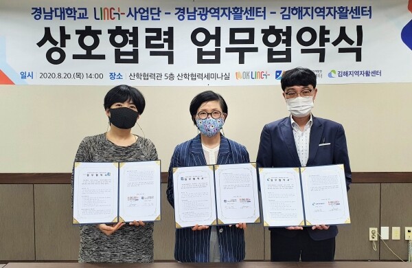 [대학저널 황혜원 기자] 경남대학교(총장 박재규) LINC+사업단은 지난 20일 경남광역자활센터, 김해지역자활센터와 상호협력을 위한 업무 협약을 체결했다.