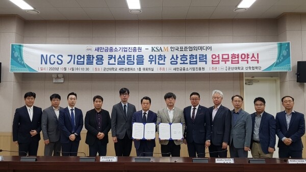 14일 군산대 새만금캠퍼스에서 열린 협약식에서 새중원과 (주)한국표준협회미디어는 상호협력 관계를 구축해 전략적으로 업무를 제휴하기로 약속했다.