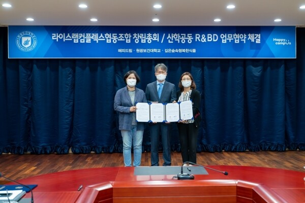 [대학저널 백슬기 기자] 원광보건대학교(총장 백준흠)가 지난 15일 산학공동 협동조합(해피드림, 깊은숲속행복한식품) 창립총회를 열고 R&BD 업무협약을 체결했다.