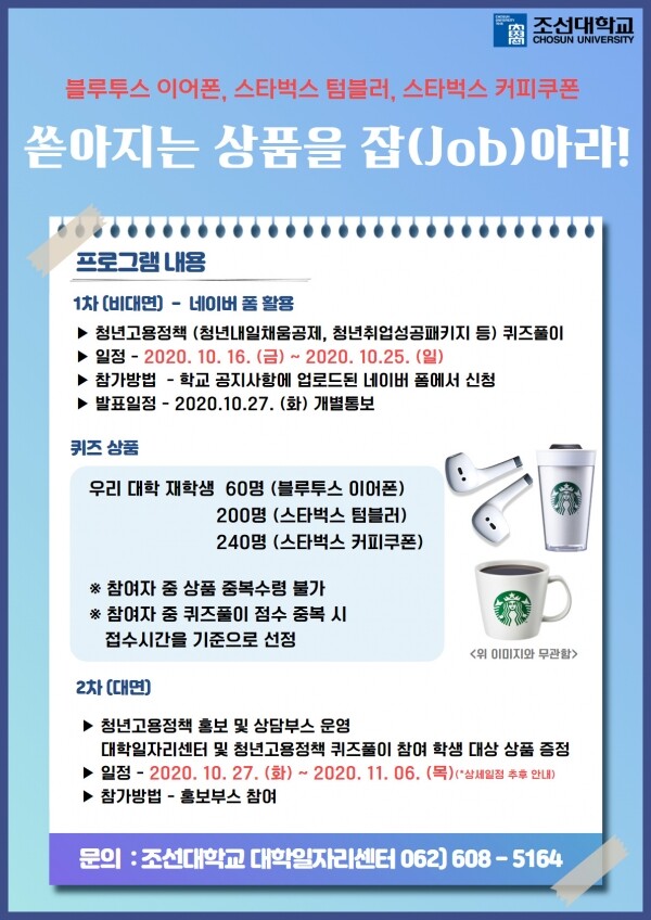 조선대는 재학생을 대상으로 홍보의 날 '쏟아지는 상품을 잡(Job)아라!’를 11월 6일까지 진행한다.