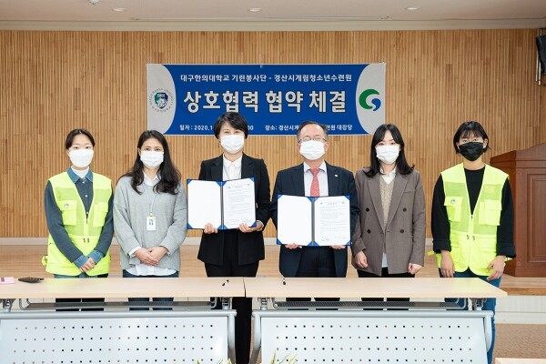 [대학저널 백슬기 기자] 대구한의대학교(총장 변창훈) 기린봉사단은 경산시계림청소년수련원(원장 정미선)과 상호협력 협약을 체결했다.