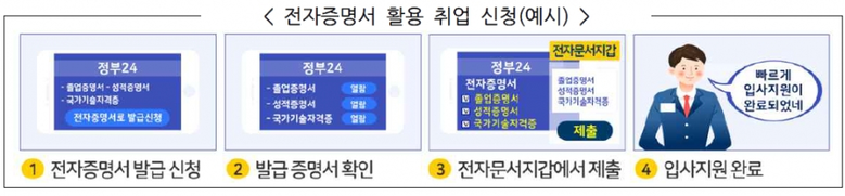 이번 협약은 취업 신청 시 필요한 구비서류를 전자증명서로 발급·제출할 수 있도록 함으로써 취업준비생에게 도움을 주기 위해 마련됐다.