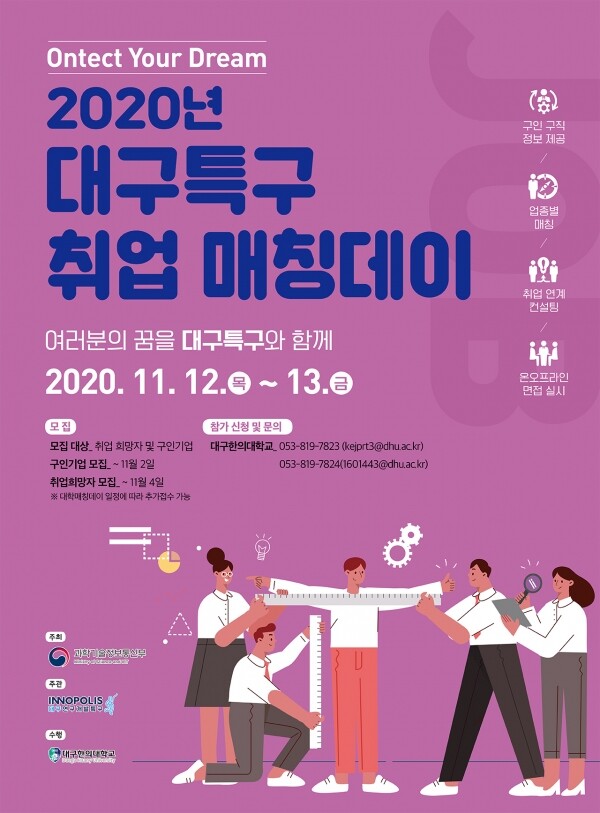 대구한의대 산학협력단(단장 박수진) 이노폴리스캠퍼스사업단은 11월 12~13일 ‘2020미니채용박람회’를 연다.