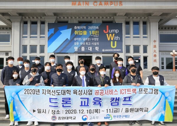[대학저널 오혜민 기자] 중원대학교(총장 김두년)는 지난 10일부터 11일까지 중원대 실습실 및 드론비행훈련 실습장에서 2020년 지역선도대학 육성사업-공공서비스 ICT 트랙 프로그램으로 ‘드론 교육 캠프’를 열었다.