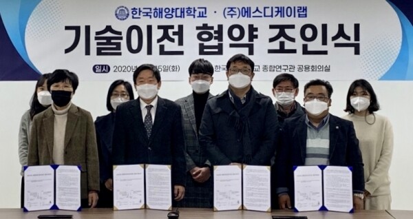 [대학저널 임지연 기자] 한국해양대학교(총장 도덕희) 산학협력단은 청년TLO 육성사업과 연계된 기술사업화 우수사례를 알리기 위한 ‘기술이전 협약 조인식’을 지난 15일 한국해양대 종합연구관 공용회의실에서 가졌다.