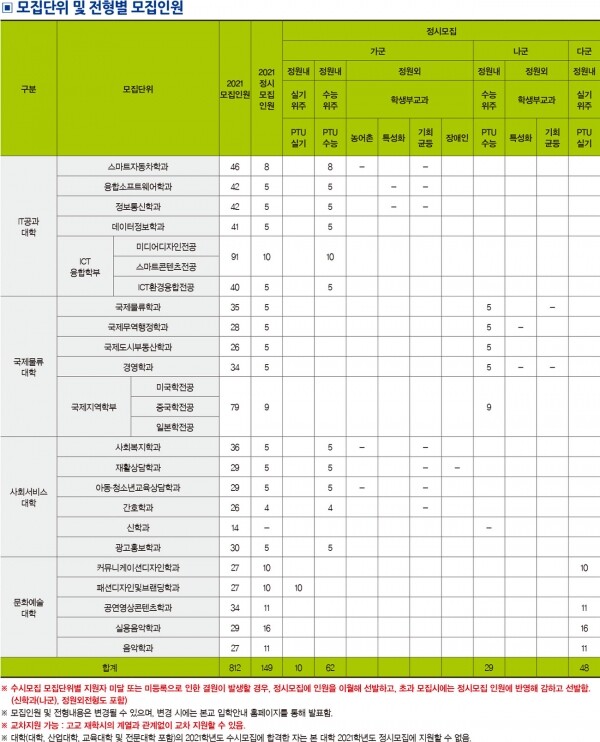 정시모집에서 PTU수능전형 시행…91명 선발