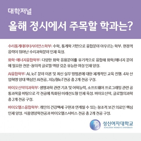 [카드로 읽는] 성신여자대학교 2021 정시모집