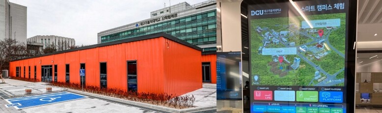 (오른쪽)스마트시티 트랙 학생들의 결과물 ‘스마트캠퍼스 체험용 키오스크’
