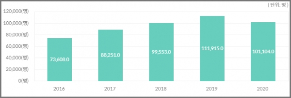 2일 대학알리미의 공시자료에 따르면 지난해 4년제 대학의 외국인 유학생 숫자는 10만1104명으로 전년 대비 1만811명이 줄었다. 약 11%가 감소한 것이다.