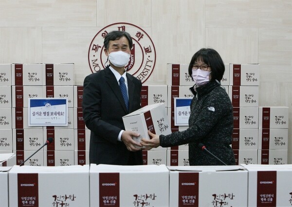 [대학저널 오혜민 기자] 목원대학교(총장 권혁대)는 김병국 학교법인 감리교학원 이사장이 교내 청소와 경비·보안 등을 담당하는 노동자들에게 설 선물을 전달했다고 10일 밝혔다.