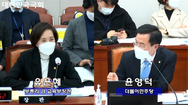 부총리겸 교육부 장관에게 질의하고 있다. 사진=윤영덕 의원실 제공