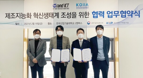 [대학저널 임지연 기자] 한국산업기술대학교(총장 박건수, 이하 산기대) ICT융합제조지능화진흥연구센터는 10일 최근 제조지능화 혁신생태계 조성을 위해 한국산업지능화협회와 업무협약을 체결했다고 밝혔다.