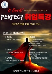 [대학저널 오혜민 기자] 상명대학교(총장 백웅기) 대학일자리센터는 오는 19일 ‘SM PERPECT(퍼펙트) 취업특강’을 한다.