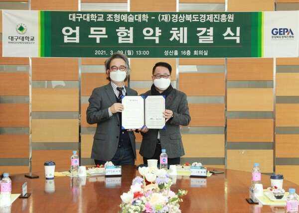 [대학저널 임지연 기자] 대구대학교 조형예술대학이 경상북도경제진흥원과 대학과 지역기업의 공동사업을 위해 업무협약을 체결했다.