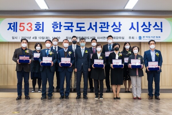 한국도서관상은 1969년 제정돼 도서관 발전에 기여한 단체를 표창하고 공로를 치하해 도서관사업 발전에 대한 의욕을 고취시키기 위해 매년 시상한다.