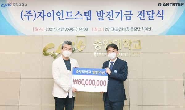 [대학저널 임지연 기자] 중앙대학교(총장 박상규)는 30일 자이언트스텝이 발전기금 6천만원을 기부했다고 밝혔다.