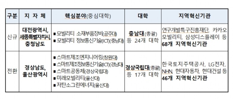 특히 대전은 대덕연구개발특구 등 기술개발·연구 기반, 충남은 제조업 역량, 세종은 자율주행실증특구 등 실증기술·환경을 보유하고 있어 복수형 연합을 통해 해당 지역에 부족한 핵심인재 양성에 크게 기여할 것으로 기대되고 있다.