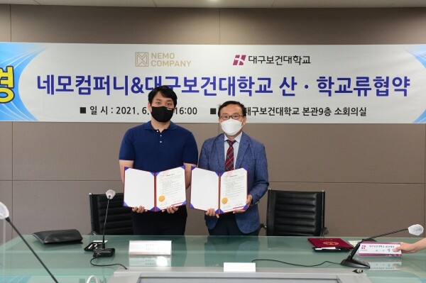 [대학저널 임지연 기자] 대구보건대학교(총장 남성희)는 지난 9일 네모컴퍼니와 대구보건대 9층 회의실에서 산·학 교류협정을 체결했다고 14일 밝혔다.
