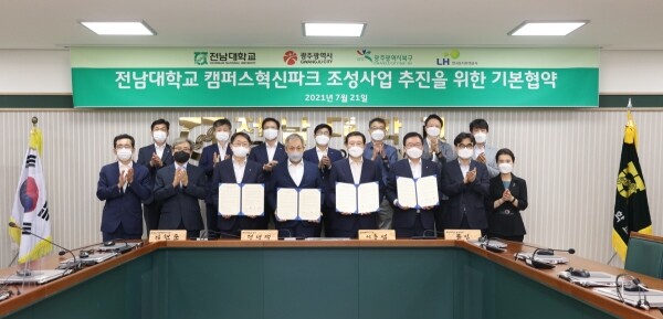 [대학저널 오혜민 기자] 전남대학교(총장 정성택)는 21일 광주광역시·북구·LH공사와 청년 일자리 창출과 지역경제 활성화를 위한 전남대 캠퍼스혁신파크 조성을 위해 손을 맞잡았다고 밝혔다.