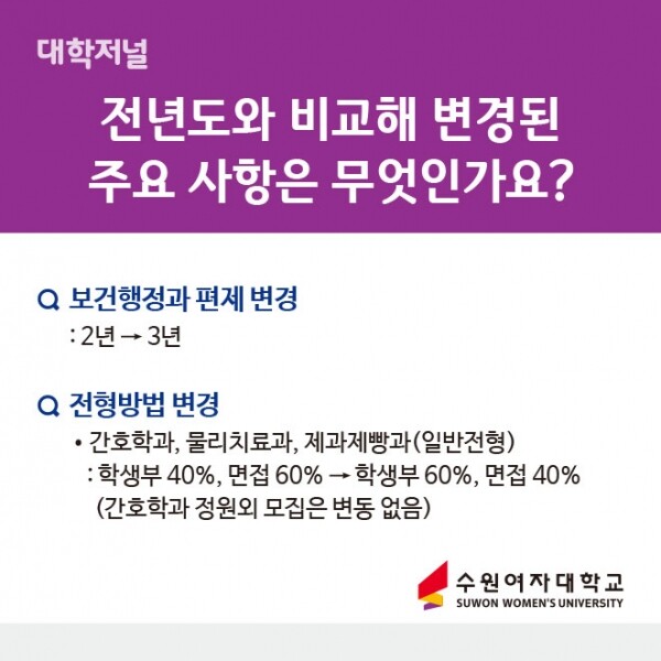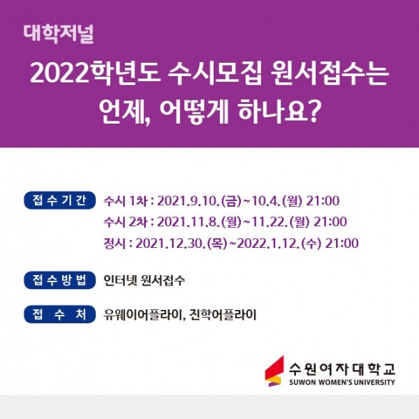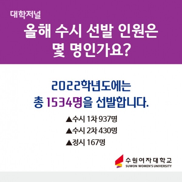 [ 카드뉴스 ] 수원여자대학교 2022 수시모집
