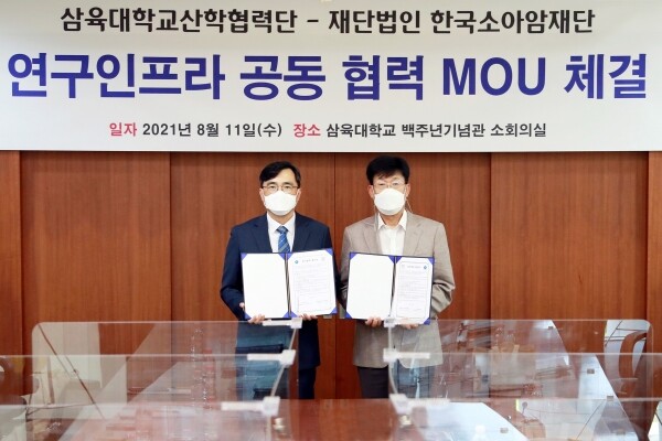 삼육대는 지난 11일 삼육대 백주년기념관 소회의실에서 한국소아암재단과 이 같은 내용을 골자로 한 연구 인프라 공동협력 MOU를 체결했다고 12일 밝혔다.