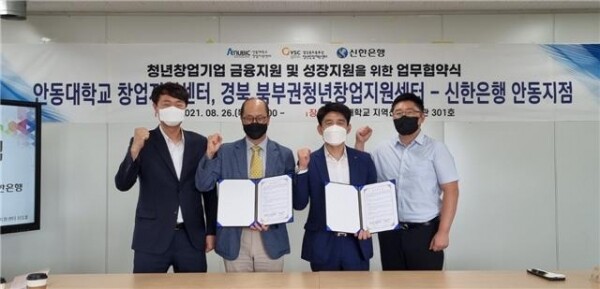 [대학저널 김주원 기자] 안동대학교(총장 권순태)는 북부권 청년창업지원센터가 신한은행 안동지점과 청년창업기업의 금융지원과 성장지원을 위한 업무협약을 체결했다고 30일 밝혔다.