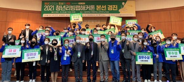 대회 결과 ‘아카이빙 살롱’이란 주제로 지역민과 청년 간 소통이 이뤄지는 대화의 장을 만드는 기획을 한 ‘어나더레벨’팀과 폐서적을 활용한 스마트팜과 함께 관련 체험 프로그램으로 새로운 가치를 창출하는 기획을 한 ‘아인’팀이 각각 대상을 수상하면서 300만원의 상금을 수여받았다.