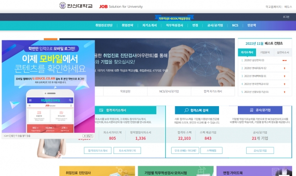 [대학저널 오혜민 기자] 한신대학교(총장 강성영)는 대학일자리센터가 학생들의 취업역량을 강화하기 위해 ‘한신취업솔루션’ 홈페이지를 마련해 취업정보를 제공하고 있다고 9일 밝혔다.